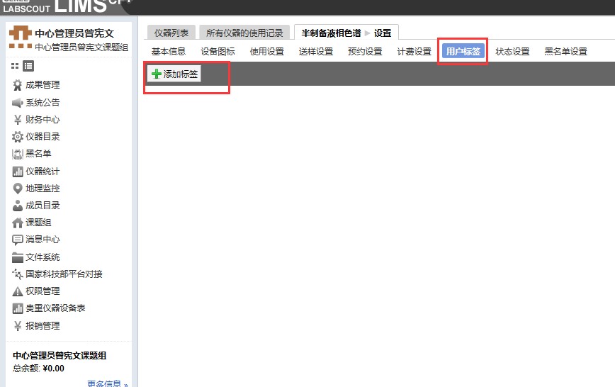 3、设置标签名称,并在课题组位置选择添加需要按此收费标准的老师的课题组后点更新。