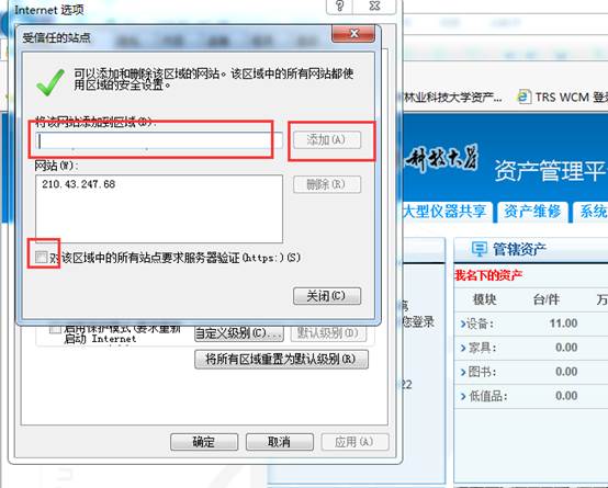 一、资产管理平台进行资产录入时出现选择框边有两个放大镜、选择时无法弹出选择框、无法保存情况时请按以下程序操作: