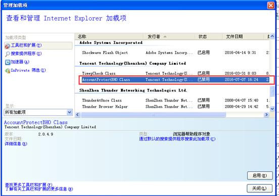 6、如果有些能进入但不能点击的话,请打开Internet选项中的管理加载项,如下图: