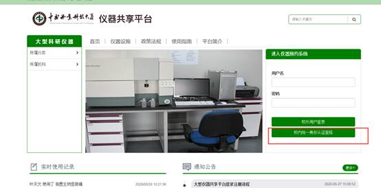 1、需要通过自用电脑(非仪器端的电脑)登录中南林业科技大学大型仪器共享平台(http://dygx.csuft.edu.cn)。可通过国有资产管理处网站(http://szglc.csuft.edu.cn/)登录。登录用户名为工号(学号),密码为统一身份认证的密码(初始密码为身份证后六位的登录初始会强制要求修改)。