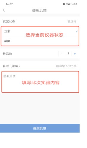 8、如果关闭时,没有成功反馈,就需要登陆学校大型仪器共享管理平台网站,进行手动补提反馈,否则 24 小时后将无法正常使用仪器。
